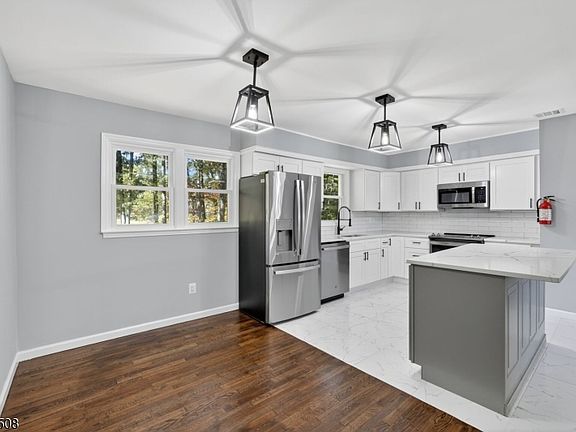 Completely Renovated 4-Bed, 2-Bath Bi-Level on 1 Acre This fully renovated 4-bedroom, 2-bath bi-level home sits on a private, 1-acre lot in Mount Olive Township, surrounded by woods for added privacy. Key updates include a new roof, siding, windows, garage door, central HVAC, water system, well, and septic with alarm, town certified for four bedrooms.Inside, enjoy refinished hardwood floors, a modern kitchen with quartz countertops, subway tile backsplash, and new stainless steel appliances, including a convection oven. Both bathrooms have been remodeled with contemporary fixtures. The ground level features a cozy family room, a fourth bedroom, and a full bath, ideal for multi-gen living or a home office.Conveniently located near top schools, parks, shopping, and major commuter routes (Rt. 206, Rt. 46, I-80). Move in ready, schedule your visit today.
