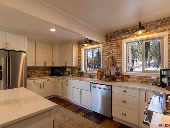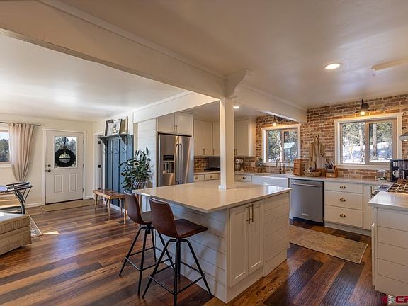 View, Views and MORE VIEWS! Newly remodeled and landscaped this proeprty is the quintessential mountain respite with beautiful new style and finishes throughout. The home has big function and an abundance of space. In 2022, the Seller completely remodeled the kitchen, entryway, informal sitting/dining/breakfast nook at entryway, the master bedroom and bath and much more effectively leaving few walls untouched. New countertops, lighting and plumbing fixtures and more. Additional outdoor yard, play, recreation space came during the landscape re-design. Privacy from neighbors without the lengthy drive from town, the home sits just outside of Rafter J Subdivision. The parcel is a meandering 5 acres with an area for the primary residence and yard and a separate location for a shop, or parking area for all the toys and equipment necessary to live the Colorado lifestyle. Not to be understated, there is NO HOA, and nothing prohibiting STR making this the perfect 2nd home, business/family retreat for your most discerning clients...and all just minutes from all Downtown Durango has to offer. As well, nearby Nighthorse Reservoir is just minutes away In short big value does exist without the astronomical price. Schedule your showings today.