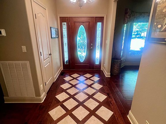 This stunning custom-built home offers the perfect blend of elegance and nature. Nestled on a lot facing the mountains, you'll enjoy the peaceful sound of a nearby waterfall , along with breathtaking trees and natural rock formations surrounding the property. Expansive windows across the back of the home bring the outdoors inside, while a spacious deck—accessible from the kitchen, bonus room, and bedroom/office—creates the ideal space for relaxation or entertaining.