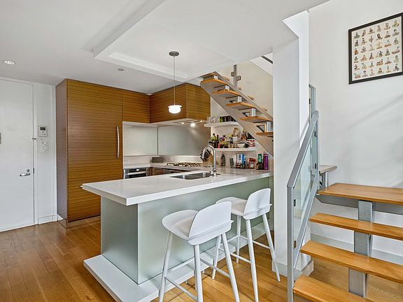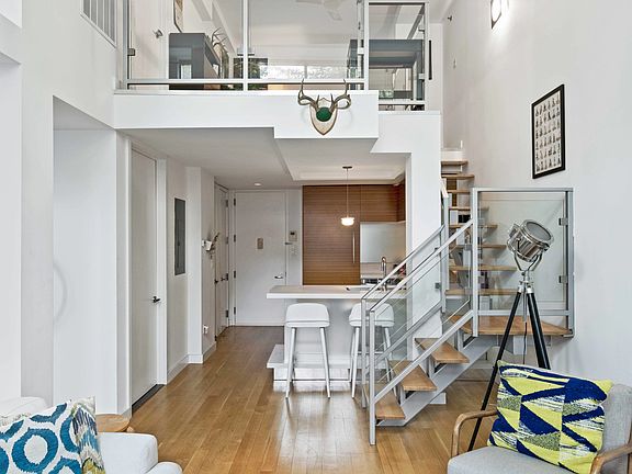 Meticulously crafted and lovingly maintained, this rare Duplex at "The Rialto" encompasses the best in architecture and design with the ability to convert to a real one bedroom with loft. Conceived by Gene Kaufman Architects with interiors by Andres Escobar the building is striking from every angle. Located in the heart of Williamsburg at the cross roads of North 5th and Bedford ave. Residence 1C, currently used as a voluminous loft space that easily coverts back to a true one bedroom punches way above its weight class. Step into your open concept living area that features wide plank oak hardwood flooring throughout, 20 foot ceiling heights and a massive wall of windows flooding the space with natural light. The custom kitchen features Miele appliance package with vented hood and quartz countertops. The bathrooms are an intimate affair with natural stones and custom designed vanities of a timeless fashion. The juxtaposition of frameless glass and corduroy textured tile create an oasis for relaxation. The mezzanine is a zen like space high above it all, with 2 closets and space for a king size bed along with an en suite bathroom. The apartment also features central Heat & A.C., a Bosch Stackable Washer & Dryer, and massive walk in entry closet. The building features a butterfly MX virtual door system with secure package room, landscaped common courtyard, and furnished common roof terrace. Low monthly charges and 3 years remaining on the 421-a tax abatement. Currently the building is going through a complete lobby and hallway makeover which once finished will be a huge value add. Located in one of New York most popular neighborhoods, "The Rialto" offers immediate access to a seemingly endless supply of world class, shopping, nightlife and dining options. Many of the city's top culinary destinations are right at your doorstep, trickled between vintage storefronts, that house art galleries, one of a kind thrift stores, and classic cafes that provide the neighborhood vibe we all crave. Transit options are endless, the new Bedford L station, Lorimer G train, and the East River Ferry are all within a 5 minute walk. These days parks are everything and at 150 N5th st you're smack in the middle of 2 of the best, McCarren and Domino. Speaking of convenience, Whole Foods, Equinox, and Apple are all located around the corner. You simply wont find a better location to live. Inquire within for alternate one bedroom floor plan.