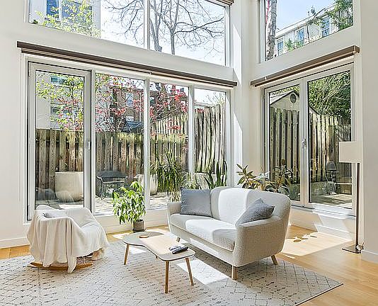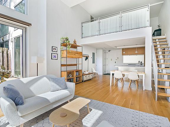 Step foot into this stunning apartment at 150 North 5th Street, Apartment 1E. This two-bedroom two-bathroom loft home features a generous open layout with soaring 16-ft high ceilings. The apartment offers privacy, quietude, and abundance of natural light from the South and West dual exposures. The chef's kitchen is equipped with Miele energy efficient appliances and a massive island that can fit four barstools comfortably. With wide plank oak floors throughout, custom closets, in-unit washer and dryer, and central heating and cooling, this apartment has it all. Situated in the heart of Williamsburg, 150 North 5th Street is three blocks to the East River Ferry, two blocks to the L train on Bedford Ave and surrounded by a vast array of shops and dining options. The building amenities include a roof deck with city views, a virtual doorman system and a common courtyard. Current assessment of $165.56 through June 2024 for updating lobby and hallways.