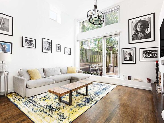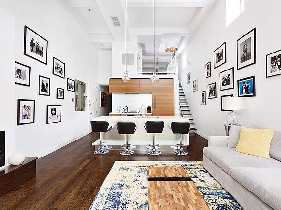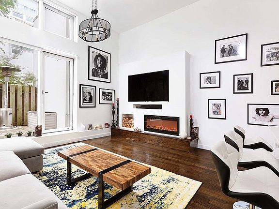 This stunning and bright 2 BR, 2BA loft -like duplex with 16' ft. ceilings, laundry in unit condo with a private landscaped garden is perfectly situated in the heart of Williamsburg. Immaculately designed with uniquely high ceilings and beautiful designer finishes. Amazing open chef's kitchen with custom teak cabinets and CaesarStone countertops. Miele, Toto, Kohler and Elkay Appliances finish off the meticulous attention to detail. The lovely landscaped terraces provides an oasis from city living without leaving your own home and allows a tranquil place to relax after the stress of the day including built-in outdoor furniture. Fantastic for entertaining in the open concept with floor to ceiling windows, custom built entertainment center with modern electric fireplace. A large Master Bedroom with custom built in wall units and spacious closest with beautiful mosaic artistic wall as the magnificent focal point of the room. The en-suite bathroom is a modern designer bathroom with Carrara marble. The building is a carriage house conversion with 31 total apartments. This luxurious boutique building's amenities include 4 shared roof decks with 360 degree Manhattan views spanning from the Empire State Building down to the Williamsburg Bridge, virtual doorman, bike storage, 24 hour maintenance, and package room; as well as being pet friendly. The Rialto is conveniently located just 3 blocks to the East River Ferry, 2 blocks from the L train on Bedford and a few minutes from the G train. Truly the most sought after neighborhood in Brooklyn as the area continues to evolve with Whole Foods, Apple, Equinox, fantastic restaurants all right at your doorstep. The 421A tax abatement runs until 2025.