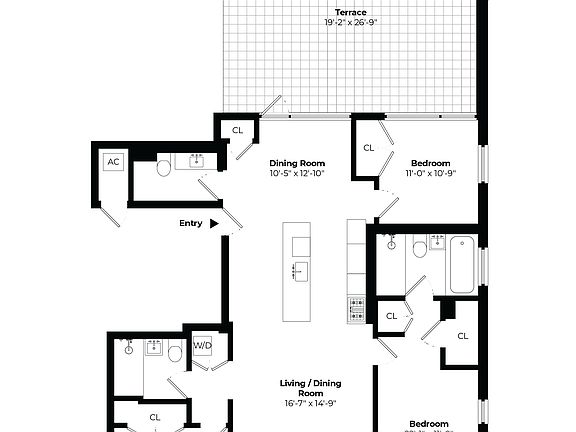 Introducing 3A at 150 N 5th Street condominium, located in the heart of Williamsburg, just one block from the L train. This meticulously adorned 3-bedroom home comes fully furnished with impeccable furnishings and art, and features 2 private outdoor spaces, one of which is a massive south-facing, sun-splashed terrace. A paradise in New York City, this floor through home features natural light streaming from end to end. The unique layout offers an abundance of sunshine in every corner. The large great room offers both a dining area, and in-island seating. The massive living room flanks the other end, complete with large television and cozy sofa seating. Double-paned windows for sound reduction offer an oasis of quiet from the bustle of city life after a long day. Right off the dining room is the large terrace with shade sail, fully outfitted furniture, and grill. The kitchen is outfitted with Miele refrigerator, dishwasher, gas stove, built-in microwave, and custom seating. Stunning hardwood floor, central heat and air, an oversized closet with full size washer, dryer, and cleaning supplies, a charming powder room, and a plethora of built-in bookshelves complete the home. The primary bedroom has built-in under-bed storage, one large closet with built-ins, and a 2nd closet perfect for shoes and complete with a safe to keep necessary items. The primary suite also offers a massive ensuite bathroom with walk-in shower and soaking tub. The secondary bedroom is also large with a full-size bed and large closet and desk. The 3rd bedroom has a great outfitted desk area, bookshelves, closet, and a twin bed, also with under-bed storage. A stunning 2nd full bathroom is located off the 2nd bedroom. 150 N 5th Street is an elevator building with remote-granted access via mobile device for guests and packages. There is also a furnished roofdeck (although you may not need it with your own fully outfitted private terrace). Dogs are not allowed for tenants (ESA dogs cannot be prohibited).