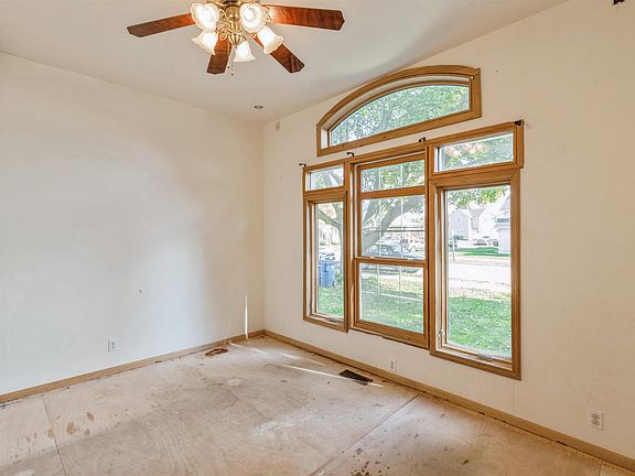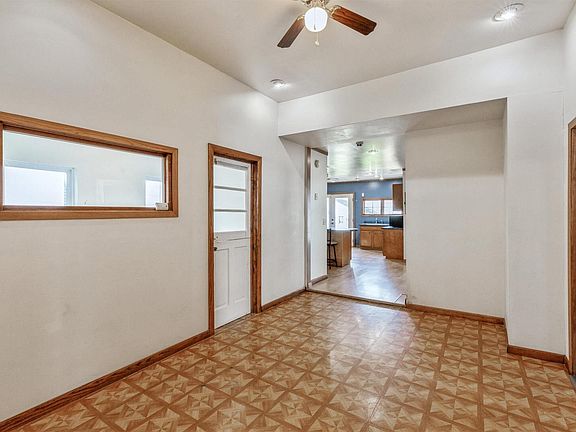 Charming two bedroom ranch with two full bathrooms! This home features a unique cathedral ceiling in the living room, large front facing windows in the front bedroom, a formal dining room, full bathroom, large eat-in kitchen with breakfast bar, and main floor laundry. The primary bedroom has an adjoining private bathroom and patio doors leading out to the rear deck. The full basement offers plenty of storage space. Large back yard with access from the alley for additional off-street parking. Brand new roof and deck (Oct. 2023) and all new electrical (Oct. 2023).