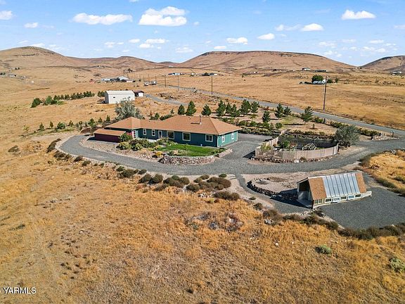 Discover peace and privacy in this custom-built, single-level home on 5 acres with unmatched views of the Gap and Mt. Adams. Thoughtfully designed as a ''California build'' passive solar home, it has unique features that increase energy efficiency and comfort. With 3 bedrooms, 2 baths, and fresh interior paint, this well-maintained property is move-in ready. The open-concept kitchen, dining, and living room creates a welcoming space for gatherings, while a wood stove adds warmth and large windows frame the sweeping views. The primary suite offers a clever layout with the dressing area/bathroom separate from the sleeping area, plus a private office nook ideal for remote work or a quiet retreat. Other features include solid-core interior doors and new exterior paint in 2024. Outside, enjoy the heated greenhouse and garden area that extend the growing season. There's also a wrap-around shed and plenty of space for RV parking, equipment, or toys. Come experience the peace and tranquility this home has to offer!