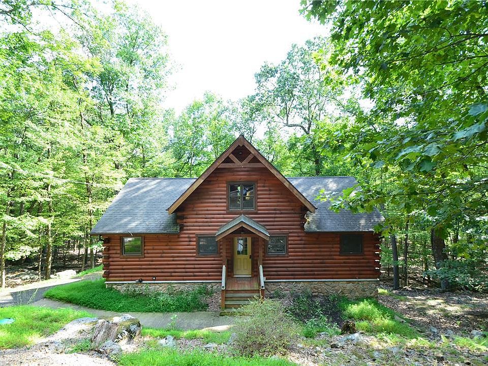 Don't miss the opportunity to own this beautiful custom built log home in Eagle Rock Resorts Hazelton, Pa. This home offers 4 bedrooms, 3 full baths. open concept living room/dining room/kitchen, floor to ceiling fireplace, family room, loft, and 1 car attached garage. Enjoy all the amenities this gated community has to offer: driving range,18 hole golf course, golf shop, swimming pools, equestrian center, beaches, lakes, fishing, boating, dog park, spa & fitness center, walking trails, dining and so much more. Located 2 hours from New York & Philadelphia, approximately 1 hour 20 minutes to the Lehigh Valley and 1 hour to Mt Airy Casino make this the perfect location for vacationing or to live year round. Schedule your appointment today!