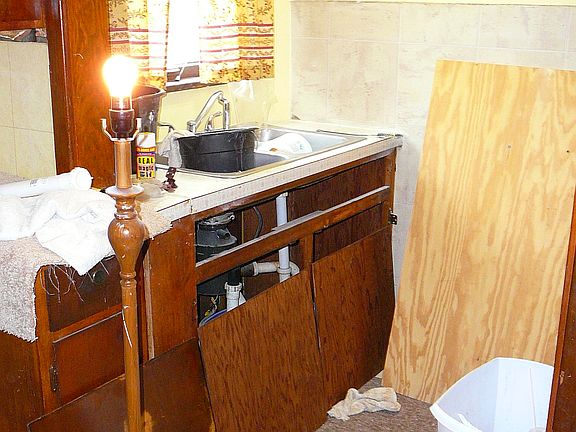 this is good house with most of the rehab completed. Has large block garage with its own electric panel. the buyer will need to add a vanity in the half bath, install flooring, stove and fridge in kitchen and upgrade the house electric box.