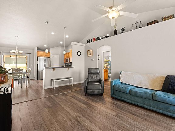 This beautiful Payette home in the Vista Hills Subdivision offers small-town charm with modern convenience. Fresh exterior paint and durable VPL flooring highlight the interior. The split floor plan provides privacy, featuring 3 bedrooms plus a large bonus room with closet-perfect as a 4th bedroom, playroom, or media space. The open kitchen includes a breakfast bar for casual meals and entertaining. The spacious primary suite boasts a relaxing garden tub and a generous walk-in closet. Outside, enjoy your private deck and an established garden space ideal for relaxing or growing plants. Ample RV parking provides plenty of space for your toys. Inside, a newer water heater ensures efficiency and peace of mind, so you can enjoy comfort without worry. Located near Harmon Killebrew Miracle Field, McCain Middle School, and Scotch Pines Golf Course, this move-in ready home blends comfort, flexibility, and prime location-don’t miss out!