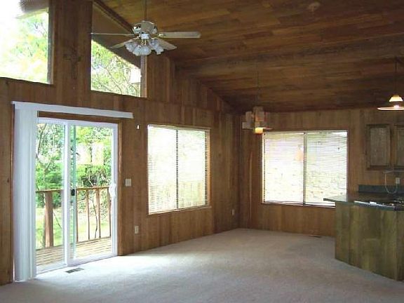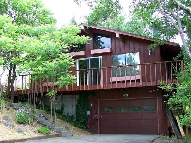 3 bedroom, 3 bath home with 1,980 sq.ft. on two levels. Large, open main level with vaulted ceilings, wood fireplace and a great cabin feel. Two bedrooms, two baths and laundry facilities on upper level. Lower level has 1 bedroom, 1 bath and large family room. Extra deep 2 car garage allows space for recreational equipment or extra storage. Wrap around deck, fully fenced back yard. All at an end of the road location close to town and schools. 1 year