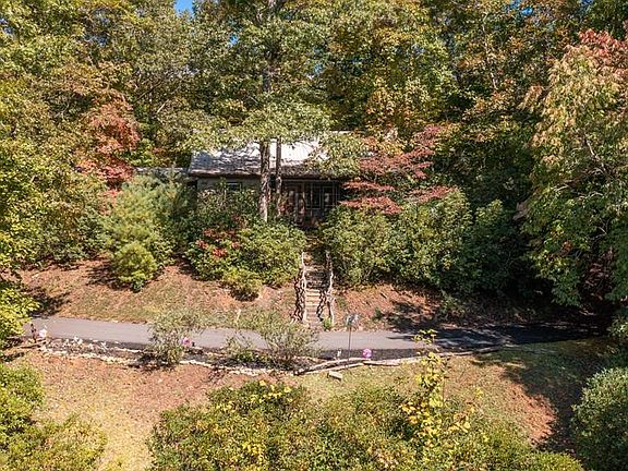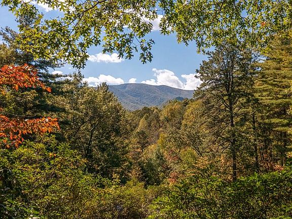 Private cottage nestled in quiet neighborhood featuring vaulted ceilings, a stone fireplace and screened porch overlooking a beautiful WNC mountain view. Two bedroom, two and a half bath with bonus loft. Peer out the window and you may find a fawn crossing the grounds through the surrounding woods. Main level living and high speed cable internet available. Spacious master with walk-in closet and en-suite bath updated with new vanity, flooring, and shower. Around 2150 sq. ft. under roof with 550+ sq. ft. of screened porch and deck with mountain laurel railing. New metal roof in 2001, private community with estate sized, well-maintained lots. The home is paved to door with an attached oversized two-car garage and easy access to 441S.