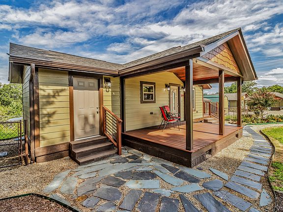 Side deckCovered front porchWell-equipped kitchenFenced backyardInviting open floor plan