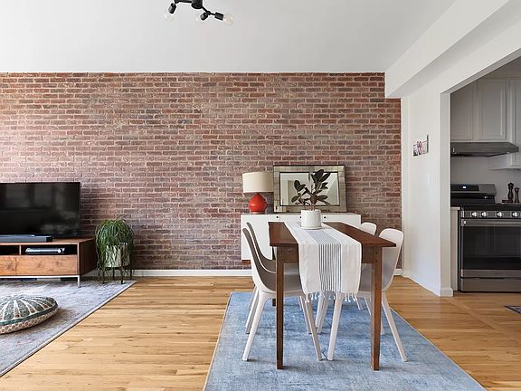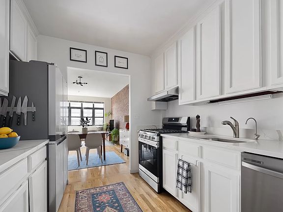 Drenched in light and perched upon the top floor of an intimate elevator condo building, this 2BR/2BA delivers space, convenience and exceptional value with low monthlies. With an excellent separation of space, the primary bedroom is ensuite and features an enormous walk in closet, with more than enough room for your in season and out of season wardrobes. The second bedroom is separated from the living space and is also very large and features another adjacent full bath off the hallway and another large closet. The large, newly updated galley kitchen has room enough for two cooks in the kitchen and features tons of cabinet and counter space, and brand new stainless steel appliances. Your own washer/dryer is conveniently tucked away in a closet. The kitchen opens up into the large open dining/living with a large picture window and exposed brick for added charm and eye-catching detail. The apartment features recently refinished hardwood floors throughout, central HVAC, custom blinds and abundant closet space. Excellent location just a block to the F/G trains, Greenwood Playground and a popular elementary school. Fort Hamilton Parkway is also right up the street and has lots of options for coffee, popular restaurants, including Hamilton's and Batata, Jaya Yoga and more. And of course, the crown jewel of Brooklyn, Prospect Park, is just a short stroll away. See you at our first open house on April 10th!
