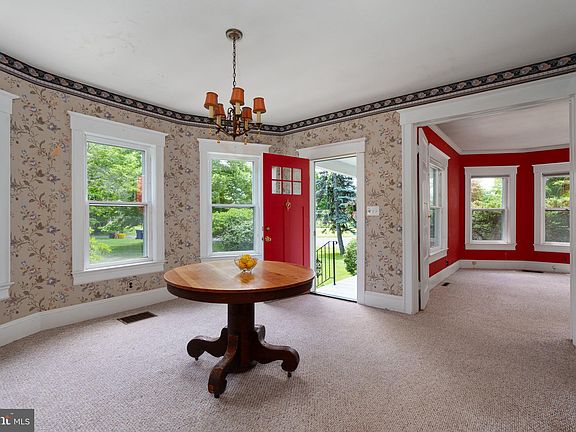 This charming circa 1900 farmhouse is filled with refreshing amenities, boasting a large barn that serves as more than just storage—it houses a delightful cabana with a changing room complete with a half bath, opening out to a shimmering in-ground swimming pool. Above is a spacious guest apartment, perfect for hosting weekend guests. The main house, celebrating its centennial, exudes the appeal that only a home of such vintage can provide. A picturesque stone walk leads from the circular driveway to a side porch entry, one of three inviting porches from which to enjoy the surroundings. Inside, the floor plan is thoughtfully designed with the pleasing elements of days gone by. The parlor, with a fireplace, sets the tone for intimate gatherings. The library and living room, featuring abundant wooden bookcases provide spaces for relaxation and entertainment. The dine-in kitchen opens to a screened porch, ideal for a morning coffee. There’s a powder room and a big pantry closet adjacent. Beveled glass, original wooden door and window surrounds, French doors, and wood flooring are found throughout the house, adding a touch of elegance. The main level also includes a convenient first-floor bedroom and a full bath. Upstairs, three additional bedrooms provide ample space, including the main suite. This private retreat features a walk-in closet, an en suite bath, and a sitting room. In the barn, guests will fall in love with the upstairs apartment, which has a large gathering room that looks out over the pool. The wide plank floors with decorative face nails add a rustic touch, enhancing the apartment's charm. The kitchen pops thanks to a cherry red refrigerator, and the full bath and designated bedroom ensure comfort and privacy for all. There’s even a laundry here! The pool area is sequestered behind lush perennials, creating a private oasis for summer fun. The ground floor of the barn is perfect for a lawnmower, snow blower, other garden tools, and machinery.