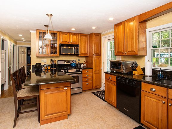Marstons Mills -Gambrel - 3 Bedroom - 2 Full Baths with a detached Garage/workshop. A Three season fully insulated glassed-in porch. Kitchen with granite countertops, cherry cabinets and a breakfast bar. Living Room has a Gas Log Fireplace and wonderful built-ins. Dining room with a built-in cabinet and French doors. First floor bedroom is presently being used as an office. Two large bedrooms on the 2nd floor with a shared full bath. Family room in the basement. Mini split heat pumps with a/c in the second floor bedrooms. Forced Hot Air Gas Heat on the first floor.- A/C.. Sloping lot but level at the top with a wonderful yard to enjoy. Hardwood on the first floor and engineered flooring on the second floor.