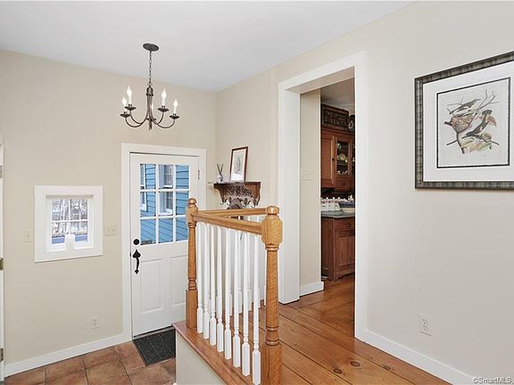 The Hezekiah Bailey house, c. 1789 per the "Monroe Historical Society"...architecturally redesigned and restored by John Denno with a private Master Suite and open concept kitchen/family expansion for contemporary living and entertaining ease. Pine and chestnut flooring on the first floor, two working fireplaces, (one is fitted with a wood stove insert), vintage built-ins, moldings and hardware add to the character! The kitchen, a focal point is tastefully decorated and fitted with granite, stainless steel appliances, (gas cooking) and custom wood cupboards. The adjacent dining room is comfortable enough for large holiday gatherings or family celebrations. Outside, in addition to the over-sized two car garage with workbench there is a two story shed, (100 years in age), perfect for future use as an artist's studio, workshop, pottery barn or craft/rec space...lovely mature and manageable property with fruit trees, flowering shrubs and old stonewall borders accent this convenient setting. An antique classic with historic importance, thoughtfully redesigned for the way we live today!