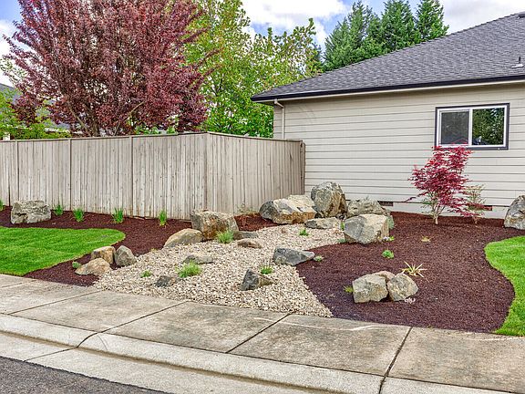 Immaculate single level home in a fantastic Central Point Location, minutes to Costco and Don Jones Park! You will love the curb appeal on this beautiful home, corner lot and ALL new landscaping. Living room with gas fireplace. Kitchen with granite counters, stainless steel appliances, new range and dishwasher, included french door refrigerator and tile backsplash. Dining area with slider to rear yard and patio. Bonus area in kitchen for family room/office area/second eating area or ? Spacious guest bath with cultured marble tub surround. Laundry room with cabinetry. Master Suite with slider to a patio, walk-in closet, large shower, dual vanities, and jetted tub. Finished garage with sink. RV parking! ALL NEW: Interior paint, flooring, Interior doors, ALL door and window trim, Landscaping, some fixtures and faucets, and MORE! You won't be disappointed.