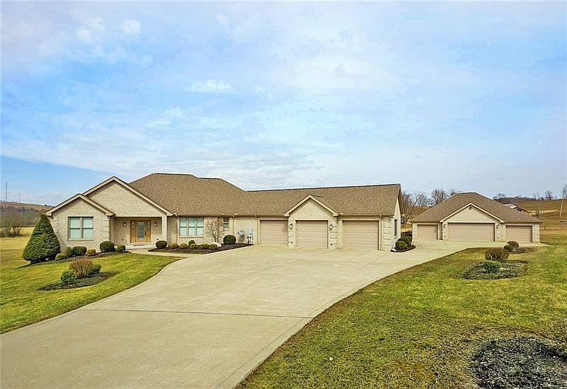 Stunning custom built brick contemporary home situated on approximately 8.5 acres in the Frazier School District. From the very fist step, you'll be impressed. This open floor plan has a formal dining room, family room with gas fireplace, A beautiful kitchen w/ many features including quartz counter tops with stainless steel appliances, ample natural light with an eat in area that has french doors leading to the sun room with a gorgeous view. Bonus pantry and first floor laundry room on the main level. Main floor master features spacious private bath w/ tub and shower along with a large practical walk in closet. Additional first floor bedroom features it's own private bath with walk in closet. Lower level features two additional bedrooms, guest bath, game room with gas fireplace, heated 12X26 all season room and a kitchen area for entertaining. Heated attached garage for 3 cars + heated detached grg which accommodates 8 cars & powder room. Perfect for car lovers!