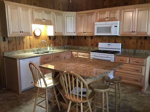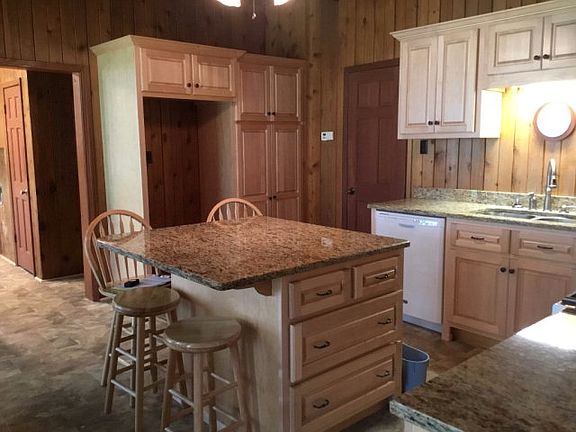 Unique Vinyl Shake 2 or 3 Bedroom 2 Bath CH/A Gas Heat New Kitchen and Bath Granite Counter tops New Cabinets Island New Vinyl Windows Through out Great Shaded Lot Blacktop Drive Double Carport with Detached Shop with Electric and Air in Man Cave Front and rear porches