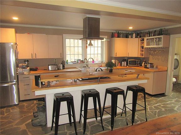 Nicely Renovated and remodeled bottom to top recently. From the new, full basement with radiant heat, to the cathedral ceilings in the upstairs bedrooms. The kitchen is open to the livingroom, complete with appliances and island with seating. There is a formal dining room with wide board floors and wainscoting. First floor 1/2 bath with laundry. The stairway up to the bedrooms has been opened to the ceiling, and includes a skylight. Master bedroom has it's own deck, and walks into the full bath with tiled shower and tub. There is plenty of room in the basement for storage or workshop. Outside, the manageable yard is level. The new detached garage workshop has power, and is plumbed for radiant heat. This is a cute house, close to town. Come take a look.