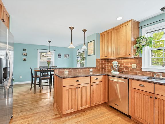 - Kit Dscrp: Window(s) - Picture, Main Level, Dining Area, Flooring - Hardwood, Countertops - Stone/Granite/Solid, Stainless Steel Appliances, Open Floor Plan, Recessed Lighting, Gas Stove, Peninsula, Lighting - Pendant