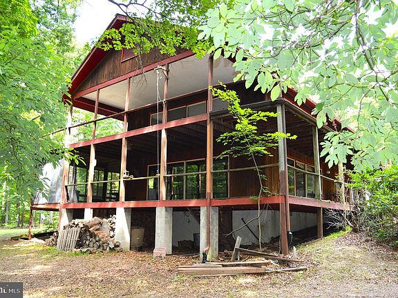 Enjoy privacy and woodland views from this unique custom home that can be utilized as a single family home or a two unit property. Much renovation will be required to bring this house back to it’s original glory, however, it has much to offer. The floor plan is open on both levels and is designed to provide panoramic views of the surrounding woods. Extensive screened, covered and open decks maximize the opportunities to enjoy this location. Each level offers 2 bedrooms, a full bath, a kitchen or an area for one, an open concept for living spaces and a fireplace. The fireplace on the first floor currently has an oil burning stove on the hearth. The double lot provides a nice buffer between neighbors and the lot backs up to State Game Lands. Additionally, homeowners in this community have access to Lake Warren, a private recreational lake. An oversized 2 car garage allows for parking or a great shop space.