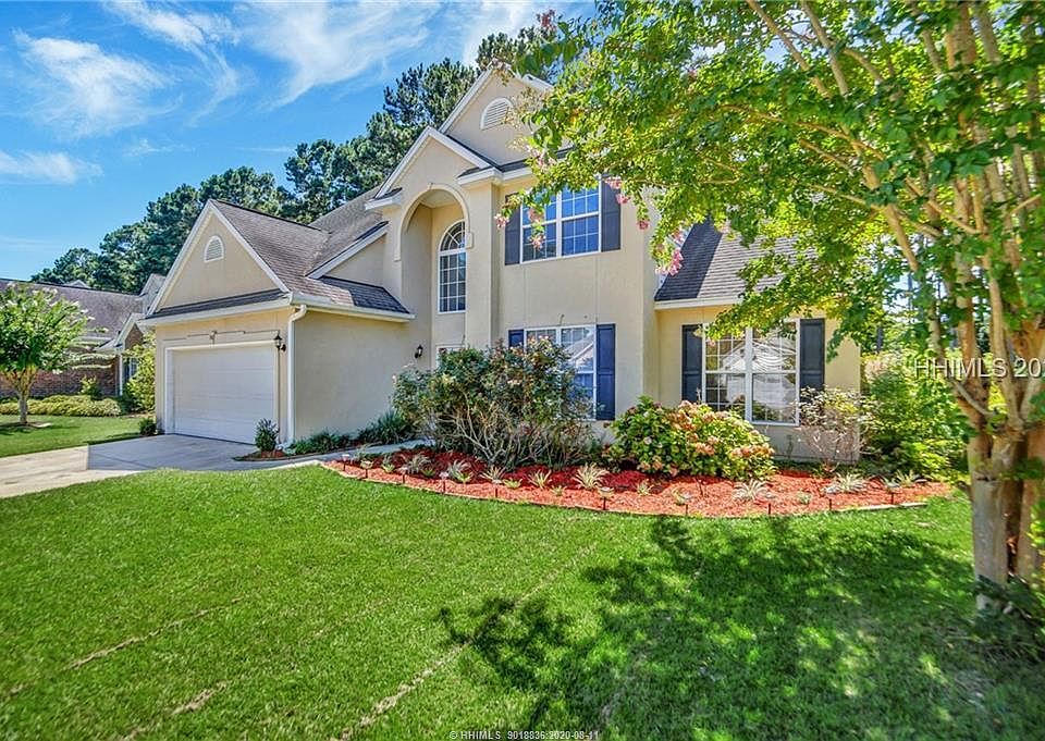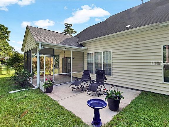 Wonderful Jordan model with stately staircase overlooks the great room and leads to the 3 bedrooms upstairs as well as the private office/den. Master Suite downstairs. Home provides wonderful bedroom separation for family and/or guests. Rear views from your screened patio provide spectacular wooded/golf course vistas, while not compromising overall privacy. With freshly painted grey color throughout, this home is move-in ready.Walk to Bluffton schools. Private golf community with low hoa fees. New roof, AC unit replaced within last two years as well as all appliances. Upgraded gutters, freshly painted stucco and complete refresh in garage.
