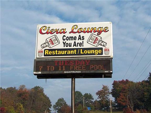 High volume traffic area with this this fabulous established, business opportunity; "Cheers" like atmosphere!!! everything you need to walk in and take over - equipment, inventory, pool tables, POS register system, pub & dining tables & chairs, flat screens, supplies, lots of stainless in kitchen, business chattel, etc.; amusements are leased; dance floor & entertainment area; outdoor dining patio; Sunday sales; huge parking lot plus a 4 bedrm rental house ($600 mo. +) and a stand alone 3 car garage;