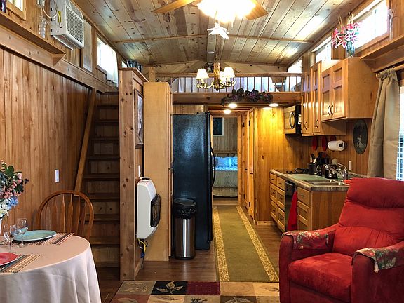 AMAZING 5 STAR RESORT IN THE NORTH GA MOUNTAINS! This park model is absolutely phenomenal! Gorgeous spot on the rushing creek! Beautifully landscaped! Main floor master bedroom with sleeping loft. Spacious floor plan, great living room with lots of windows. Rocking chair porch. Storage building. Excellent location and close to town!