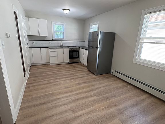 Beautiful 1 bedroom apt. Full of light, large eat-in kitchen, freshly painted, new appliances. Heat included, off street parking, 1 garage space included. A must see. Heat, sewer, water are included in the rent. Tenant pays for hot water, electricity, cable, etc. Minimum income required is 51k per year with a minimum credit score of 650. Pet fee of $25 per month.