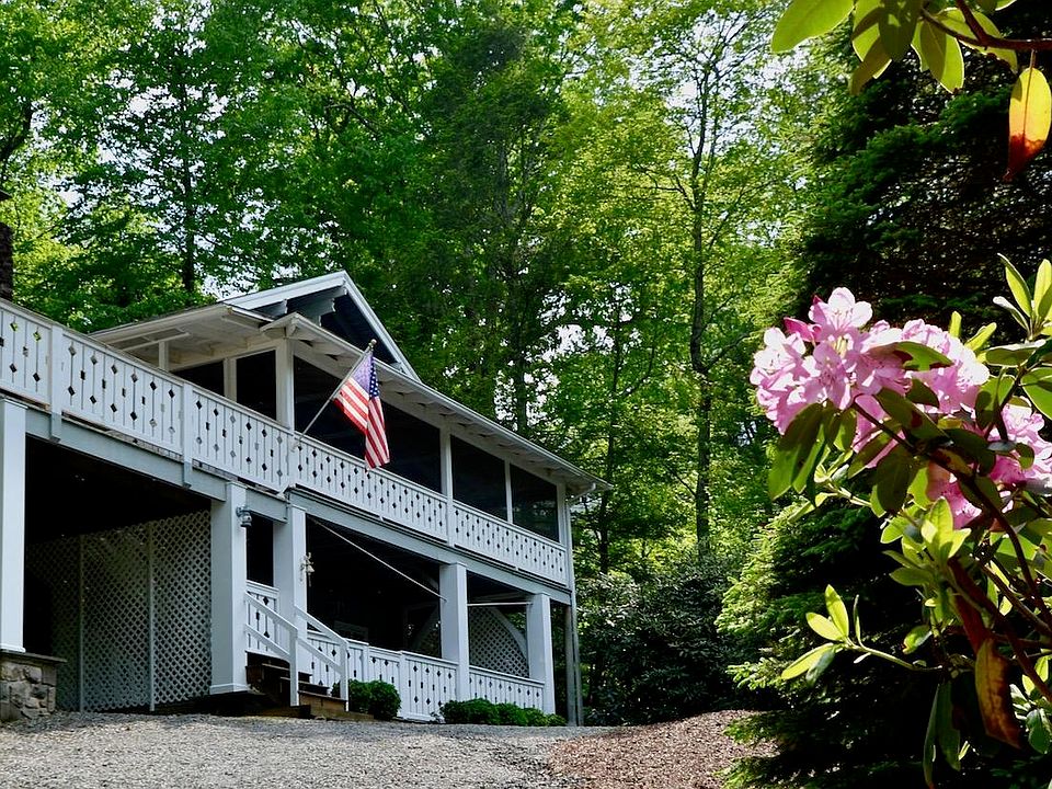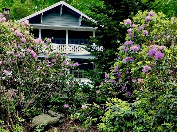 Priced to sell!!! First time offered for sale. Tranquility Cottage, built in 1915, this charmer features a large screened in porch and sun deck to enjoy summer days. The living room has a beamed wood ceiling, hardwood floors and wood-burning native stone fireplace, perfect to cozy up in all seasons. There is a formal dining room and country kitchen. The master suite is gorgeous with a propane fireplace, french doors to the sun deck, a lovely master bath and plenty of closet space. There is also a second bedroom with bath ensuite upstairs. Downstairs there's a charming family room with a 3rd fireplace, a 2nd smaller kitchen, laundry and a spacious third bedroom. This bedroom also has an ensuite bath and french doors to a covered porch. This home is being sold furnished and is move-in ready.