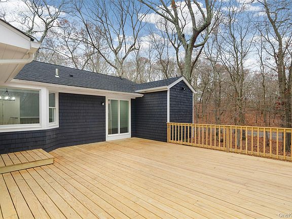Welcome to 150 Remsen Rd in the heart of Wading River! This gorgeous 3 bed 3.5 bath home boasts 2,750 sqft of living space with a detached 4 car garage which includes a loft! As you enter the home you will be greeted by stunning wood floors leading to the living room which is the perfect spot to read a book or relax in front of an oversized bay window! Walk into the den which features built in book cases, electric fireplace and cathedral style ceilings with beam accents perfect for relaxing in front of TV or looking at nature through the sliding glass door! As you walk toward the kitchen you will pass the Laundry Room neatly tucked away with a half bath and plenty of room for piles of clothes! The kitchen is bathed in natural light from huge windows on two walls and a skylight! The stainless steel appliances, additional wall oven and detailed accents perfectly balance function and elegance! The Dining Room boasts large windows overlooking the backyard and deck while being easily accessible from the kitchen. Walking down the hall towards 3 bedrooms you will notice a full bathroom complete with double vanity and rainfall shower system over the tub. Two bedrooms offer plenty of closet space, one with sliding doors and the other with a small walk-in. The primary bedroom has a sliding glass door with stunning views of the wooded backyard also allowing access to the oversized deck. The walk-in closet offers tremendous storage opportunity and the primary bathroom features a double vanity, walk-in shower with a rainfall shower and convenient bench. The basement has a walk-out door, recreational room, full bathroom and plenty of storage! This is truly a magnificent home just right for you!
