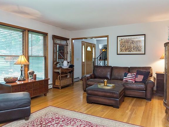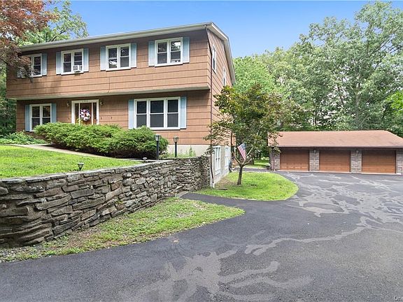 Tucked away on a Private Setting! This well-maintained Colonial with 2,376 SF sits on 1 acre of landscaped property. This home features a Huge Master bedroom and 3 additional spacious bedrooms, 2 full bath, 2 half bath, updated Eat-in-kitchen with Granite counters, stainless steel appliances, skylight,ceiling fan, oak floors, formal dining room leads to living room, Family room w/a wood burning stove and slider that leads to an enclosed Sunroom w/Vaulted ceiling, wood-burning stove, a door leads to the huge backyard and three tier deck, this home is set far from the road offering tremendous privacy. Lower level boasts Family room, Den, wet bar, rear entrance, spacious Laundry room and plenty of closet space throughout. Detached oversized 3-car garage and workshop. Home is conveniently located in the Town of Woodbury; enjoy the Woodbury Parks & Recreations, minutes away to NYS Thruway & Shopping.