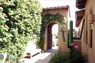 Desirable Cathedral model end unit that borders the private greenbelt area with those red rock views that you are looking for. You are greeted by the Spanish Colonial style entry courtyard which opens up into a dramatic round foyer with soaring 16 ft ceilings as you enter the home. The living room is highlighted by 12 foot high ceilings, gas fireplace and art niches for decorating accents. The spacious kitchen is open,& bright with Corian counters, island bar and breakfast nook plus a large view window above the sink to capture red rocks and greenbelt views. Master bedroom opens onto the private rear courtyard and has a large bath, walk-in closet, and separate tub and shower. The guest room is spacious w/walk-in closet & attached bath. There's even a reading/sleeping alcove for guests or children. The rear concrete patio courtyard is fully enclosed for privacy and entertaining, plus there is a private secluded sunning area. This tastefully finished home makes the perfect Sedona getaway