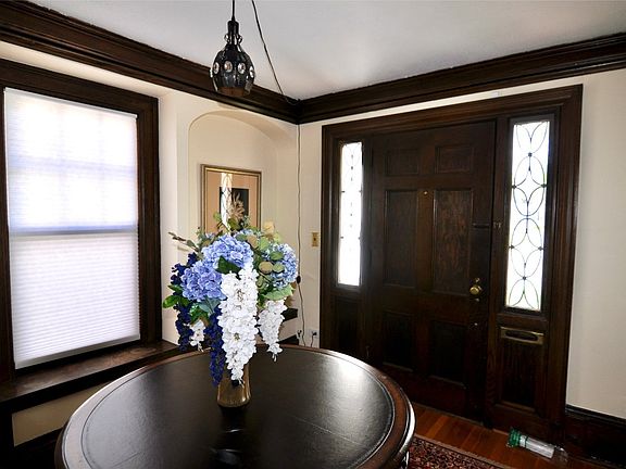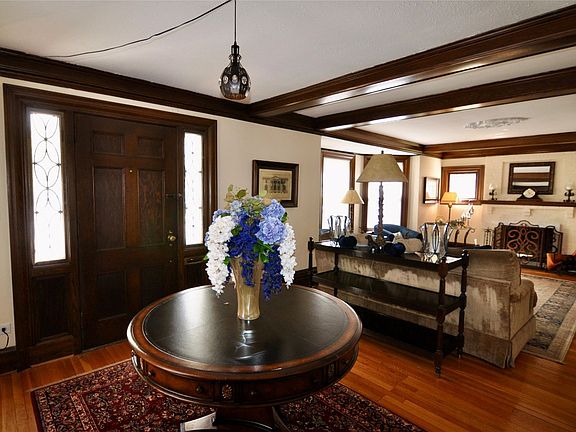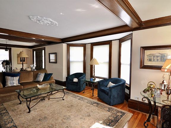 ....This "New Englander" style home with a hidden gem of a backyard was designed by Architect F.W. Dickerman for the prestigious Tweedy family in the early 1900's with its land resting in the historic Abel Bennett district. Each room has an appropriate balance of timeless design. The character & exceptional quality of antique millwork is in the wood details, beamed ceilings, and fluid banister that shows its strength and curved beauty. The formal dining room says "elegant" & living area allows you to feel the spirit of home. The open flow leads to the updated kitchen, space to eat at the island, and steps into the sunroom with commissioned ornate rare 1902 J&J.G. Low Art Nouveau tile fireplace....as seen in the MET, 5th Ave, gallery 774. The Bath has clean nurturing lines, Cigar/Bar room is made for conversation, and the tiered deck is ready for Porch Fest in August! Close to all city amenities and arts.