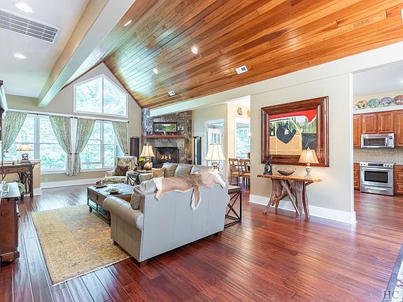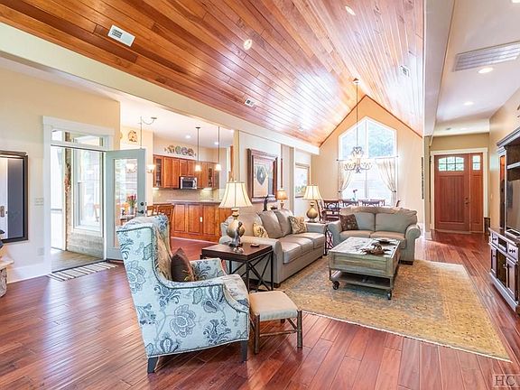 This immaculate four bedroom, four and a half bath home in the beautiful Cullasaja Club community is a must see! The home is situated on a wonderfully landscaped acre adjoining the Cullasaja River. Brightly lit with large windows and sizable rooms throughout. The main level is comprised of a spacious kitchen with stainless steel appliances, a casual dining area, formal dining area, living room with cathedral ceiling and stone gas fireplace, generous master en suite and a screened in porch with wood burning fireplace and a gas grill. The large lower level has a cozy family room with gas fireplace, a second master en suite and 2 guest bedrooms with a shared full bath with walk-in shower. One of the guest rooms is currently being utilized as an very roomy office. The screened porch and deck off the lower level both overlook the river running the length of the back yard. The attached, oversized double garage has room for your golf cart and has a sealed floor - this garage is spotless! This home has been meticulously cared for and is ready for it's new owners! High speed fiber optic cable internet included in your amenities! The Club amenities are fabulous, you do not have to join to live here, but you will want to once you see the facilities! Recently renovated, attention was paid to every detail.