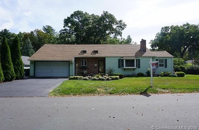 Large three bedroom ranch with in-ground pool. Great for the person who needs one floor living or who likes to entertain. Roof is 2 years old, furnace, oil tank and hot water heater is 5 years old. Newer windows and central air. This home is great for entertaining with covered porch right off the kitchen which leads to the pool area. Kitchen offers cathedral ceiling with skylights and tile floor with slider to back deck. Dining room has parquet floors and is located off the kitchen. Large living room with hardwood floors, built-in shelves and wood burning fireplace for those chilly nights. The master bedroom has laminate floor with cedar closet and shower with heat lamp and wood ceiling with molding. Rest of home has two other bedrooms both with hardwood floors and a full bath. Laundry is located on the first floor also. Not included is approx. an additional 300 square feet in finished basement with another wood burning fireplace. Back yard has a large deck which encloses the in-ground swimming pool for your summer gatherings. Home is located close to schools and highway. Back yard also has another driveway.