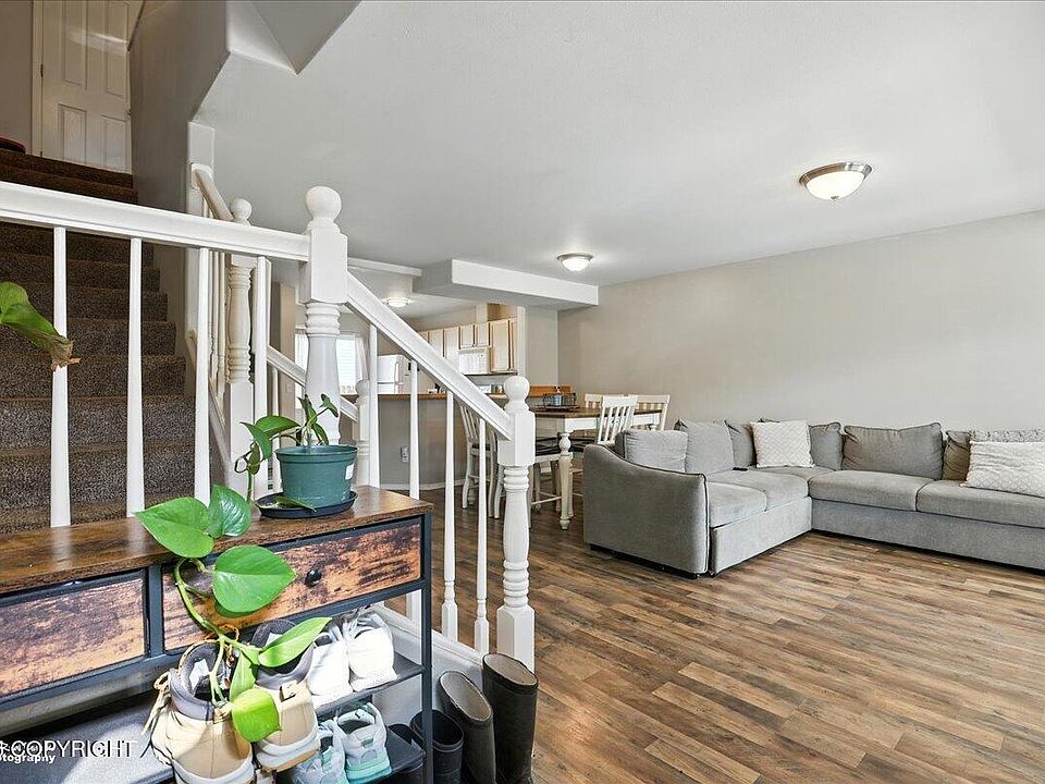 You'll love the ease of low-maintenance, care-free living in this light-filled townhouse. Conveniently located near JBER and Tikahtnu Commons for shopping and dining. Features an open layout with living areas on the main floor and all bedrooms upstairs. Enjoy a new fenced yard for privacy and peace of mind. HOA covers many essentials for worry-free living. CCR's allow 2 pets.