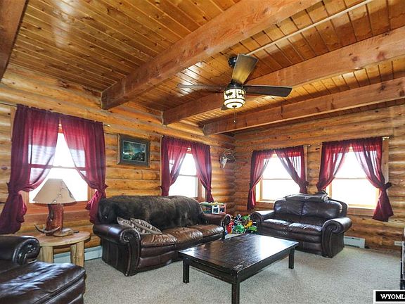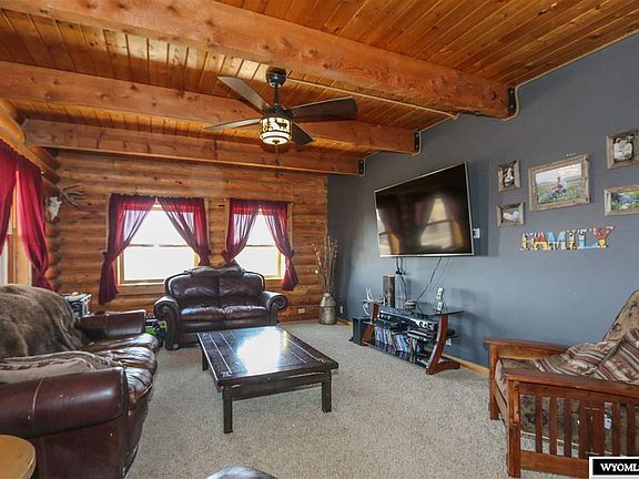 This beautiful home on 5 acres is one of a kind! It sits only minutes from town, has Pioneer Water, natural gas, a HUGE 30x40 heated garage with 9' doors, lots of trees, and the views of Casper Mountain are breathtaking from the covered front porch. The beautiful back patio with a water feature offers a peaceful outdoor retreat.