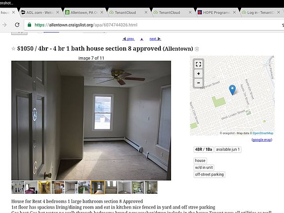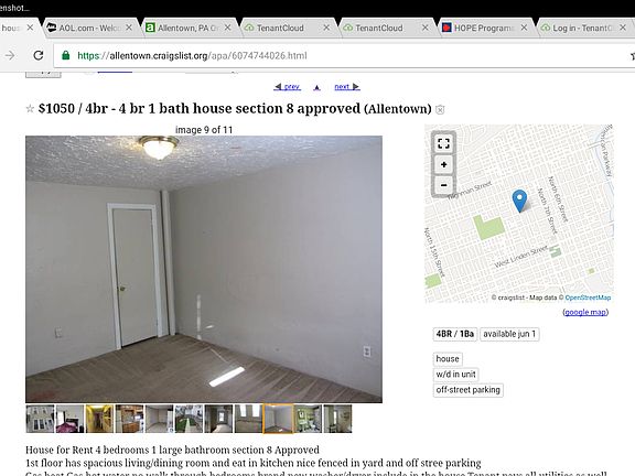 House for Rent 4 bedrooms 1 large bathroom section 8 Approved 1st floor has spacious living/dining room and eat in kitchen nice fenced in yard and off stree parking Gas heat Gas hot water no walk through bedrooms brand new washer/dryer include in the house Tenant pays all utilities as well as a water & sewer every 3 months Home is located on quite street and is convenient to everything Please bring: driver's license, card, and proof of income. And section 8 voucher $1,100 Rent plus $1,100 security deposit only Section 8 Approved tenant by appointment only Text show contact info prefer text messaging Available July 1, 2017 NO PETS Tenant responsible for all utilities Section 8 tenant only