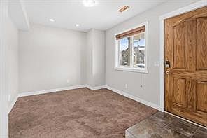 OPEN HOUSE today, Saturday, 1-3 pm! Discover your future home in the thriving community of Skyview Ranch! This 1400 sq.ft. end unit townhouse boasts two expansive primary bedrooms, featuring vaulted ceilings, central air,... for ultimate comfort. As you step inside, the lower level, conveniently situated at street level, offers a versatile flex room suitable for a den or office, accompanied by a handy powder room for guests. Secure parking and extra storage space are provided by the attached single garage. Ascending to the upper floor, you're greeted by an inviting open-concept layout. The modern kitchen showcases stainless steel appliances and a granite counter island. The adjoining living room, complete with a gas fireplace, invites relaxation, while the adjacent dining area seamlessly extends onto a spacious sunny balcony, ideal for morning coffee or outdoor gatherings. Throughout the upper level, airy 9-foot ceilings enhance the sense of space and brightness, contributing to the home's welcoming atmosphere. The third level houses two primary bedrooms, each adorned with cathedral/vaulted ceilings, adding a touch of sophistication. Additionally, there's a convenient laundry room with a sink. This home offers tranquility while providing easy access to various amenities. With nearby shopping, dining, and public transportation options, all your needs are within reach. Ready for immediate occupancy, this home invites your personal touch. Don't miss the chance to embark on an affordable living journey in Skyview Ranch – schedule your private showing today!