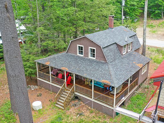 Highland Charm !!! If you're longing for an authentic 'MAINE' CABIN with all of the rustic charm a cabin has to offer, this cottage captures every ounce of charm and warmth that you are looking for. Nestled on .60 natural lakeside acres that lead to the lovely lakeside waterfront you'll be taken back in time. From the moment you step inside you'll smile at the very traditional quaint kitchen, small in size, housing a nice new wood stove to take the chill off for those cooler days. From there you step into a separate dining area that is open to a large living area with a sizable built in sitting area. Great for snuggling up with a book or watching tv, still allowing for plenty of additional space for comfy furniture. You'll enjoy the large brick wood fireplace for cozy evenings. Off the living area is a small bedroom and small bath. All overlooking beautiful Highland Lake. From the living area you walk onto a large open wrap deck plus a screened porch area. Plenty of space for enjoying your morning coffee and evening dinners and many gatherings with friends and family. The upper level has three bedrooms and a full bath. Wood floors throughout with the worn appeal of rustic !! The drive down the country road that narrows to a one car pass, gives the essence of country cottages and cabins awaiting. A shed currently houses the laundry area plus a separate area for storage. This IS a cabin but keep in mind that it has much potential should you want to update and make it into more of a home. The lot across the road has potential to build a garage with an upper area for finishing. Sanborn Grove is a small community of homes and cottages built in the 1900's and awaits your arrival !