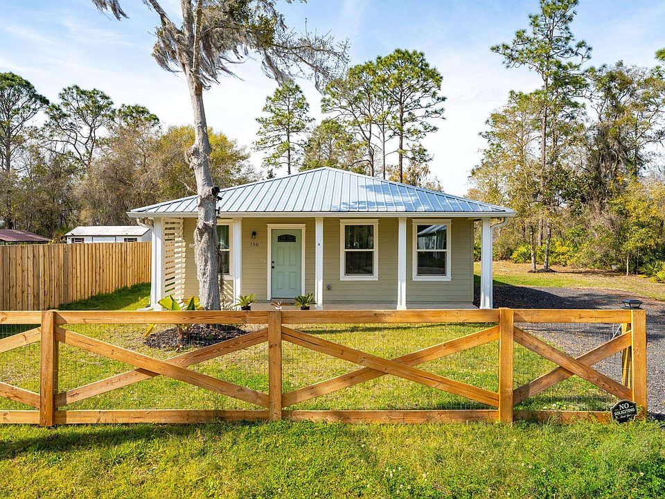 Incredible 1-year old new construction home with approximately 9 years of builder's warranty and 3 years of homeowner's warranty remaining. Drink your morning coffee on the covered front patio and enjoy the Florida breezes off the Saint Johns River which is located just 1 mile away. Cook dinner in your beautiful kitchen that features an island with counter space for additional seating. All stainless-steel appliances that are just over 1 year-old, walk-in pantry and a really cool tiled backsplash are also offered in this kitchen with tons of cabinet space. The great room offers a built-in electric fireplace, shelving and plenty of room for your family to gather. There is additional space that is currently being used for a dining area also. Retire to the master bedroom for a good night's sleep. This room is amble with a great walk-in closet and attached ensuite bathroom. The bathroom features double sinks, standalone soaking tub and tiled shower stall. All accented with black hardware throughout the home. The 2 additional generous size bedrooms make great kids rooms, space bedrooms, home office or whatever you'd like to use them for. The second bath also offers a tub/shower combo with tiled shower walls. The roof is metal for years and years of Maintenace free worries and the yard is partially fenced as well. Come check this one out! It would make a great primary residence, great 2nd home or rental. Don't miss your chance! All information is deemed to be correct and to be verified by the buyer.