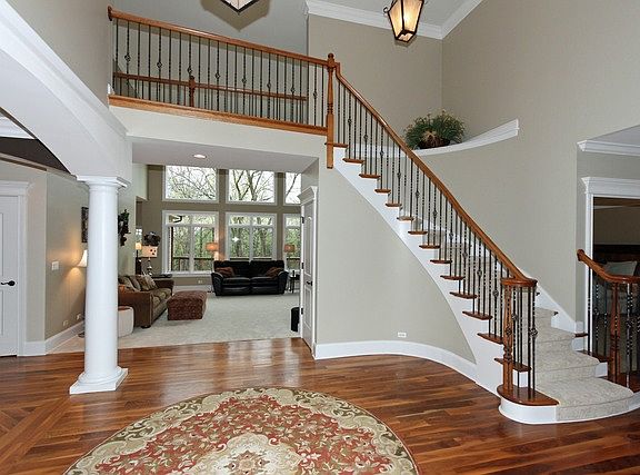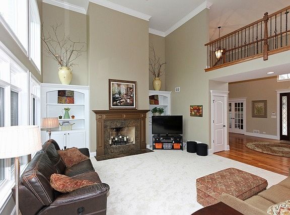 Impressive two story French Provincial with open floor plan situated on 2.86 wooded acres. Main level has walnut floors throughout. Study with French doors and wainscoting. First floor Master suite has his and hers closets, tray ceilings, and luxurious bath. Gourmet kitchen with maple cabinets, granite countertops, and high end commercial grade appliances. Sunny breakfast area, and hearth room with brick fireplace. Upstairs has 3 bedrooms, each with their own full bath plus a bonus room over the 4 car garage. Finished walkout lower level with 11 foot ceilings, 4 fireplaces, bedroom, full bath, wet bar and storage space.