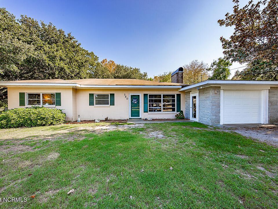 Located just a stone's throw away from downtown New Bern with easy highway access, there's ample space for your boats or recreational vehicles. The bedrooms and baths are comfortably sized, and you'll totally dig the fireplace surround with its wicked mid-century vibe.