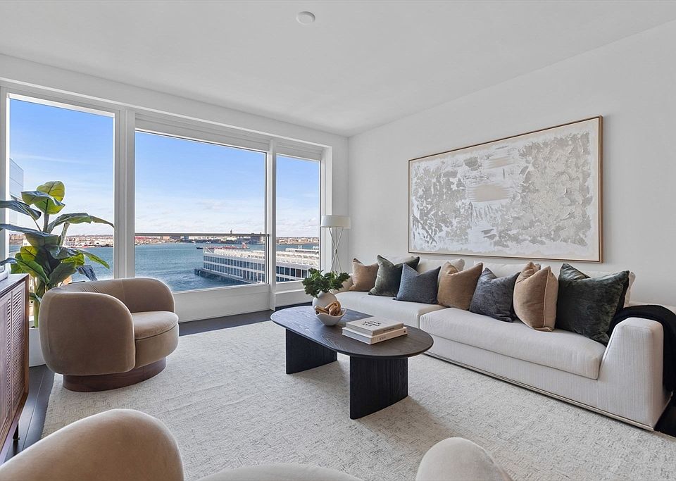 Experience elevated living in this stunning water facing residence. This elegant 2-bedroom, 2.5-bath home offers sweeping views of Boston Harbor from both the living room and primary bedroom. Designed for the entertaining homeowner, the gourmet kitchen features Wolf and Sub-Zero appliances, a wine fridge and marble countertops—all accented by custom Italian cabinetry from BAMO. Thoughtfully appointed with ample storage, a dedicated laundry, custom handcrafted hardware, Sherle Wagner International bath fixtures, and Phillip Jeffries wall coverings, this home seamlessly blends function with sophistication. Residents enjoy access to top-tier amenities including an indoor pool, hot tub, sauna, steam room, spa, state-of-the-art fitness center, and a harbor-facing grand lounge. 24-concierge, parking and door attendant included.