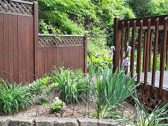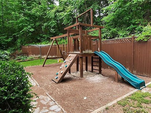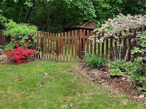 Great layout with an open living area that includes the living room with a pellet stove, the kitchen and dining area. The kitchen island has bar seating, and also adds work space. Sliders from the dining area lead the the level back yard, that is fenced in. 3 good sized bedrooms are down the hall, including the master with a walk in closet, and a private bath with stall shower and jetted tub. Many of the floors have been updated with hardwood. The basement is big and dry for storage, or it could be partially finished. The lot is mostly wooded, and a great place to explore the rocks and trees.