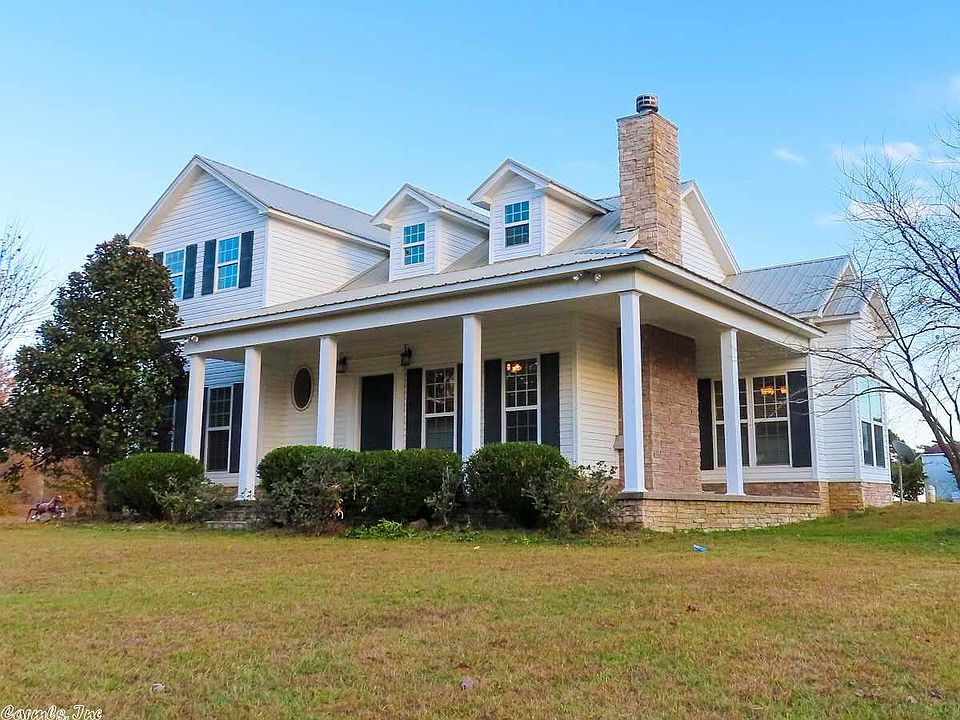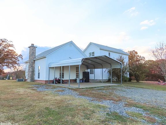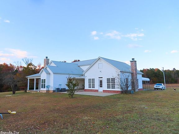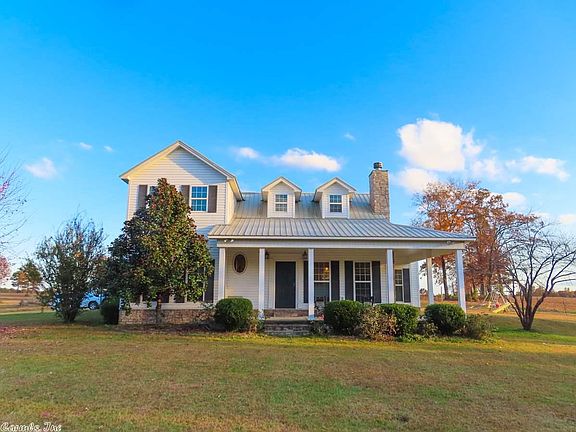 Beautiful modern farmhouse sitting atop a hill on 80 acres with both pasture and woods. The driveway begins at the end of the road and curves around a stand of trees, over a small bridge, and up the hill to the home. Inside, there is a large family room with wood-burning fireplace, formal living room with wood-burning insert, kitchen with lots of storage, laundry room, and safe room built into the master closet. Outside is large barn, 55 acres of pasture, and 25 acres of woods with riding trails throughout.
