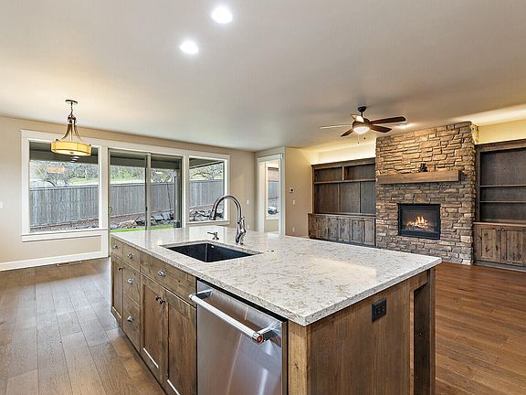 Nestled in the foothills of East Medford on a cul de sac. this privately situated Craftsman offers 4+ beds, 3 full baths and a 3 car garage. Main floor has an open concept with large windows overlooking the beautiful level yard & wooded hillsides. Gourmet kitchen is an entertainer's delight with large walk-in butlers pantry, quartz countertops, spacious island, gas cooktop, wall oven. and a plethora of custom cabinetry. Living area has a beautiful floor to ceiling gas fireplace with built-in cabinetry on either side. Wide planked engineered hardwood floors and tons of storage throughout the home. Main floor primary suite has spa like feel with a tub, walk-in shower, double vanity, walk-in closet. Extra bedroom or office downstairs too. Upstairs are 2 bedrooms, full bathroom, wet bar and an additional studio or office! Very nice! Fenced backyard, low maintenance landscaping and great woodland and mountain views.