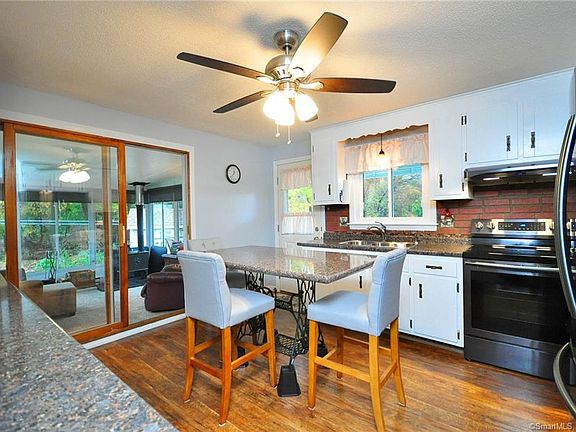 Your wait is over Amazing value in Suffield. Original owners have updated and maintained this lovely move-in ready home located in a quiet neighborhood. This colonial offers 4 bedrooms, an updated kitchen with island and newer appliances, updated flooring throughout main level, newer energy efficient vinyl windows throughout, spacious dining room, and a large living room with a wood stove (7 cords of split firewood included. A slider off the kitchen opens to a glassed in porch with a second wood stove and baseboard heat for year-round use. House backs to wooded open space. Step out onto the deck leading to a patio overlooking a serene park-like side yard with apple trees, peach trees, 2 sheds, and more. Large basement with plenty of storage, newer septic tank, alarm system, too many updates to list, a MUST SEE Close to town center, shopping, and dining. Suffield is excited to welcome you into it's close-knit community as you start on your new adventure.