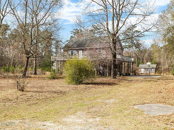 Sportsman Paradise - 2 beds, 1 bath home on 1.28 acres. Large wrap around porch for outside enjoyment. 3rd floor has master bedroom and bath that needs finish work( sq ft not included). With 3rd floor finished total sq footage would be over 1600 sq ft. Ground floor is roughed in for a parking space, bathroom, and living area. Greenhouse and out building for extra storage. Boat ramp on the Cape Fear River less than 1/4 mile away. No HOA. Water did not enter the 2nd floor living area during Florence. House needs work - being sold as is.